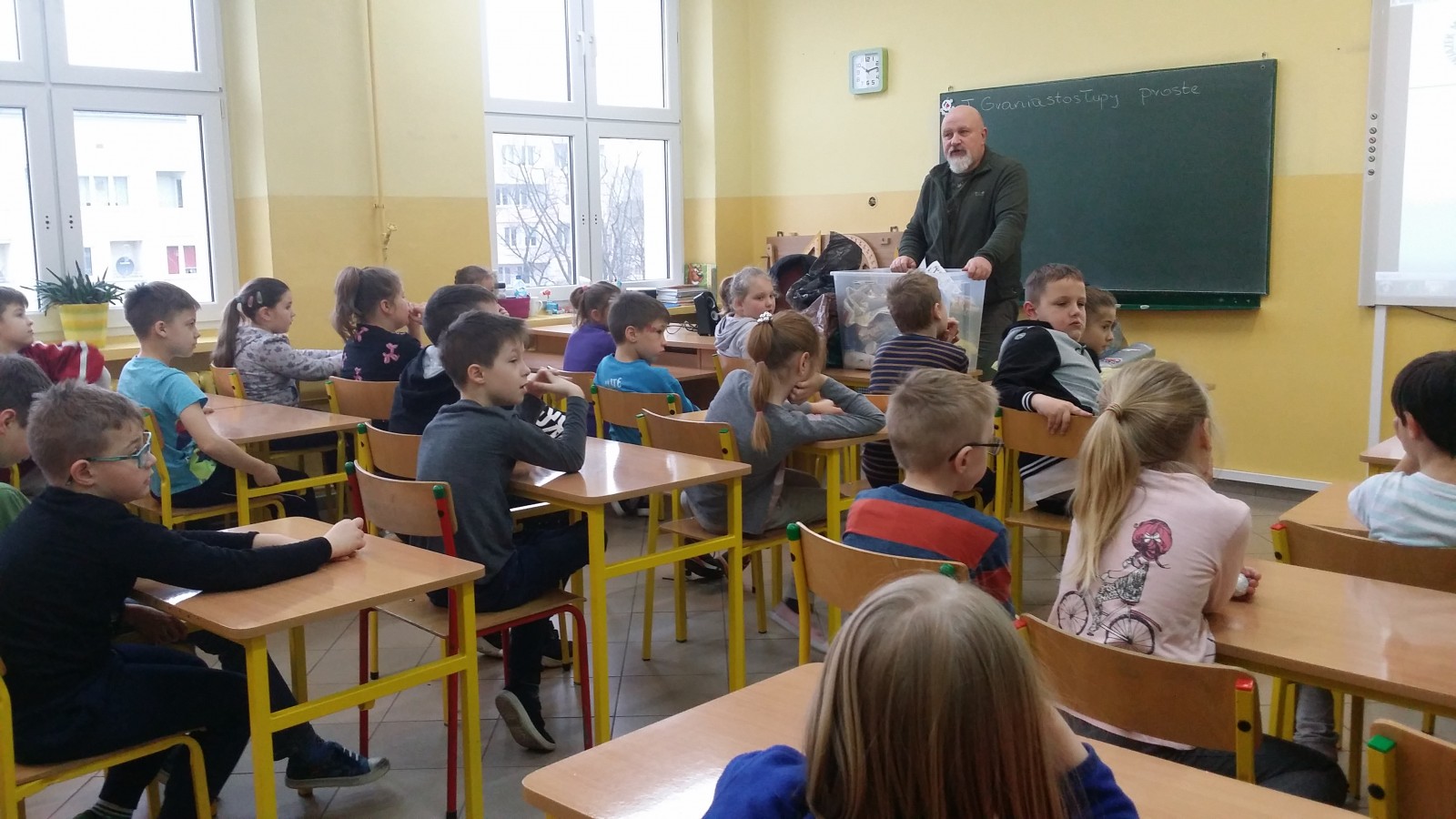 Spotkanie edukacyjne z uczniami klas 3s i 3b Publicznej Szkoły Podstawowej w Kędzierzynie-Koźlu w ramach projektu Dbam o środowisko - jestem specjalistą. Jego celem jest kształtowanie nowych nawyków związanych z ekologicznym sposobem życia