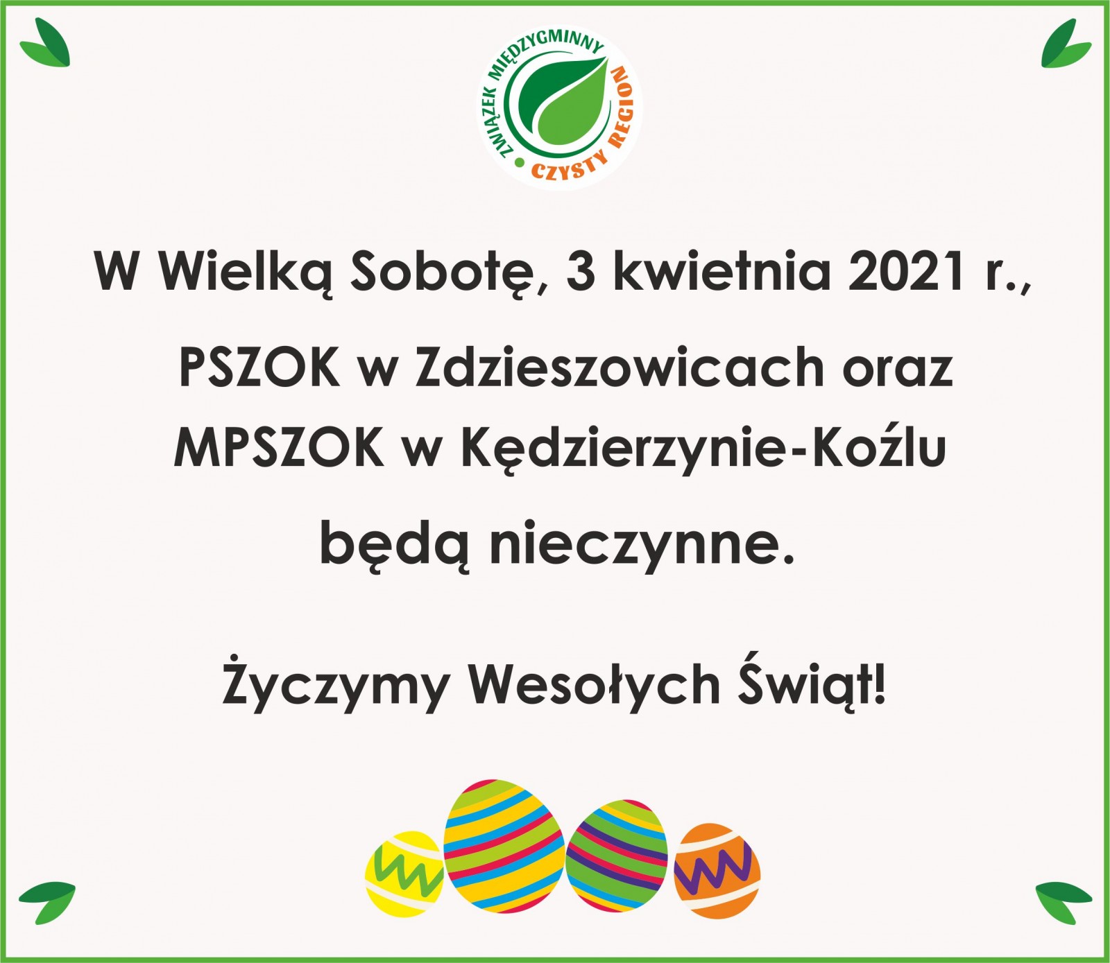 W Wielką Sobotę, 3 kwietnia, PSZOK w Zdzieszowicach i MPSZOK w Kędzierzynie-Koźlu będą nieczynne
