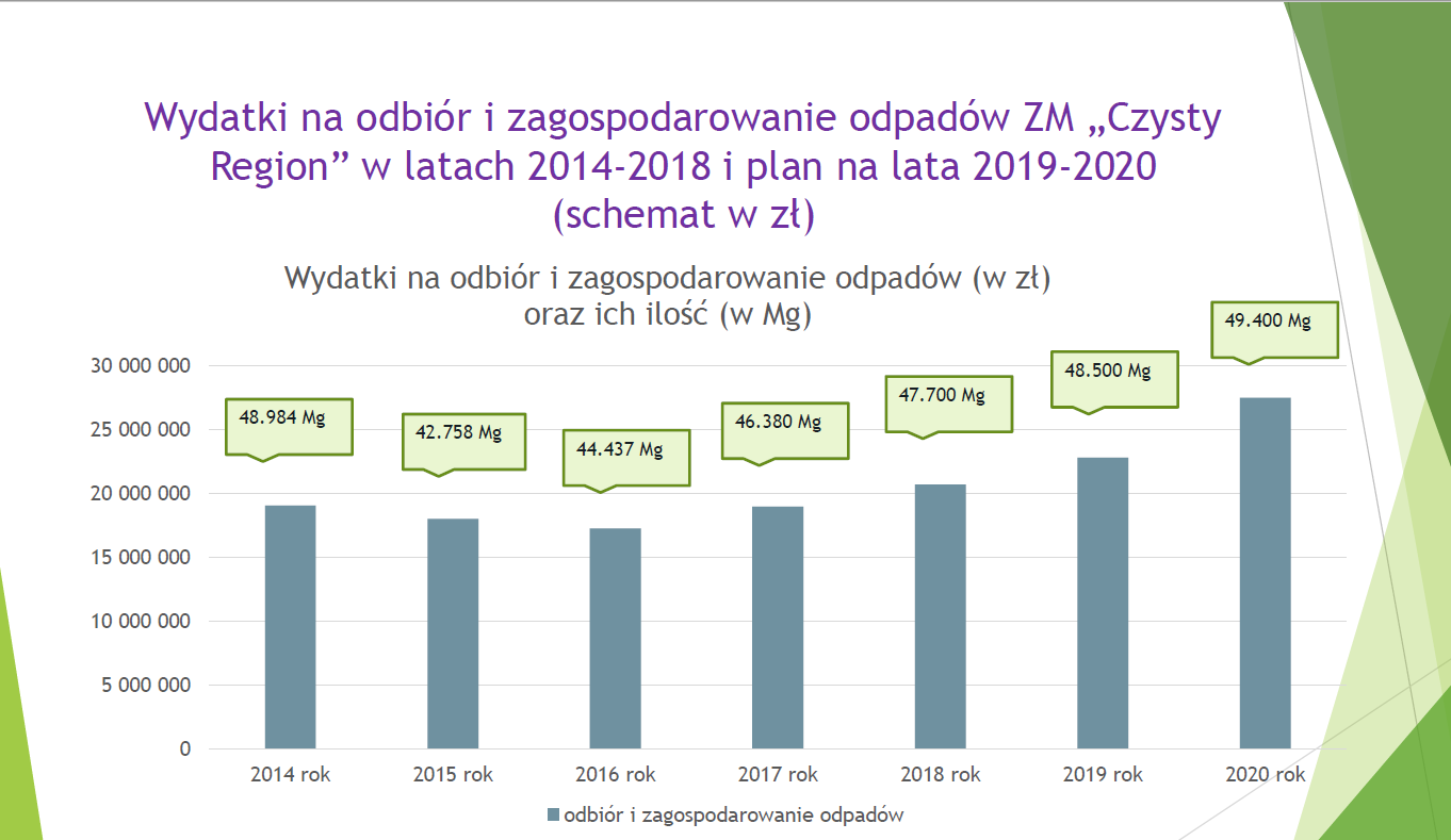 Zmiana stawki wynika głównie ze wzrostu cen za zagospodarowanie i odbiór odpadów, co stanowi ponad ¾ kwoty podwyżki (3,51 zł). Ma to związek przede wszystkim ze zwiększeniem (ze 170 zł od tony do 270 zł od tony) stawki opłaty za korzystanie ze środowiska ustalonej przez Radę Ministrów, wzrostem ilości wytwarzanych odpadów, kosztów pracy, energii, paliwa i innych usług. Przy znacznym wzroście masy zbieranych i zagospodarowanych odpadów liczba ludności Związku stale maleje.