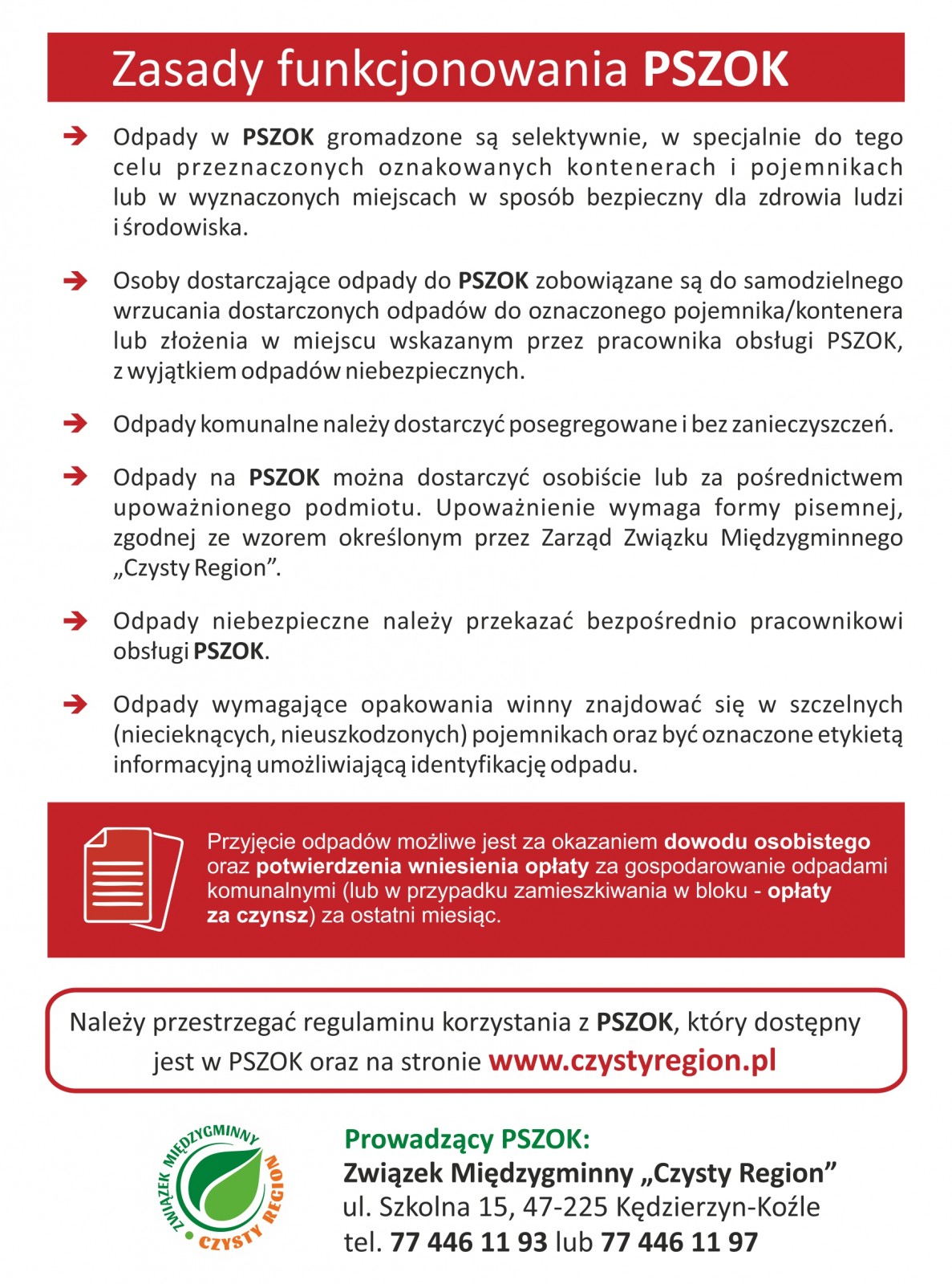 Szczegółowe warunki korzystania z PSZOK określa załączony Regulamin.