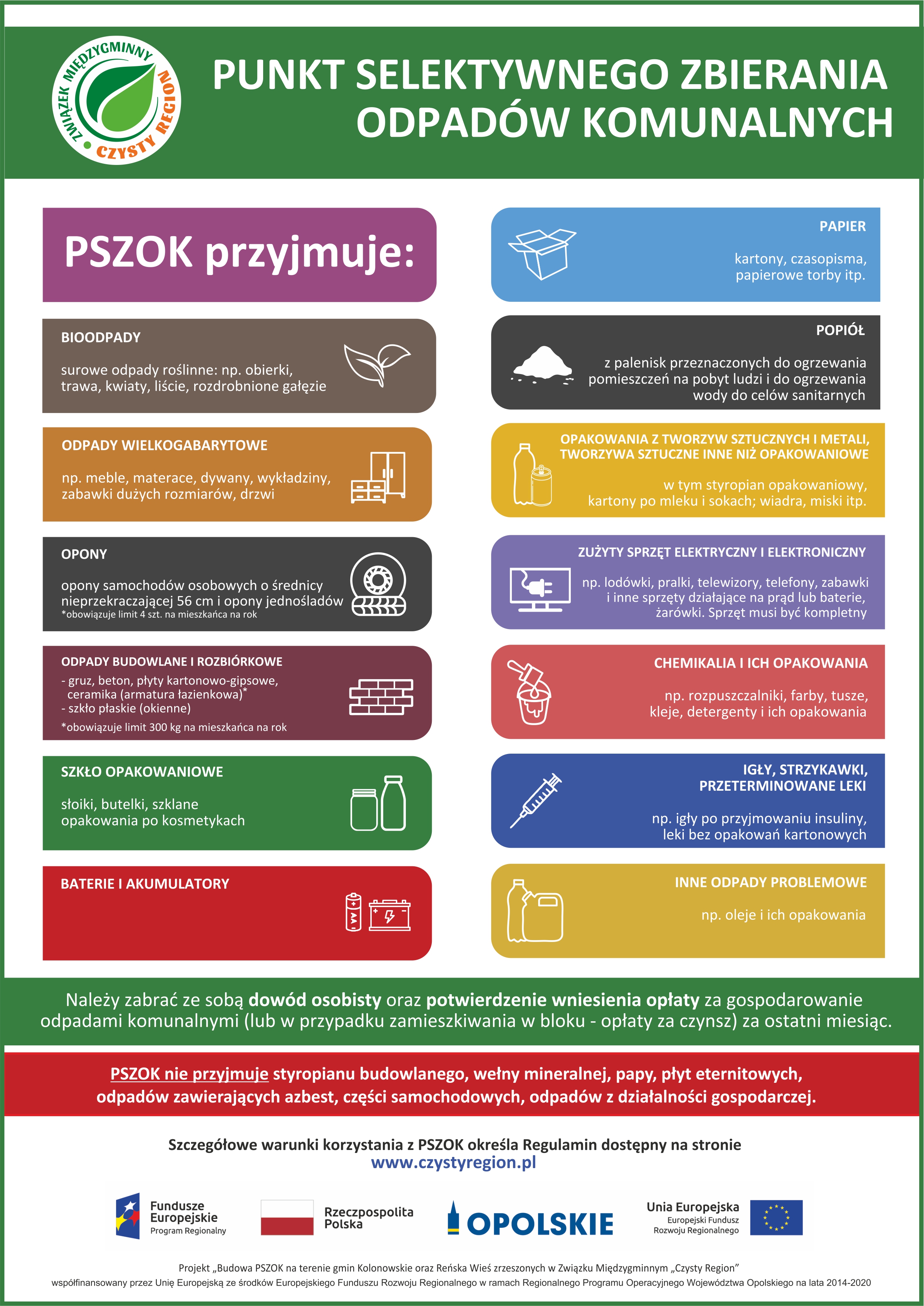 Tytuł projektu: „Budowa PSZOK na terenie gmin Kolonowskie oraz Reńska Wieś zrzeszonych w Związku Międzygminnym „Czysty Region”