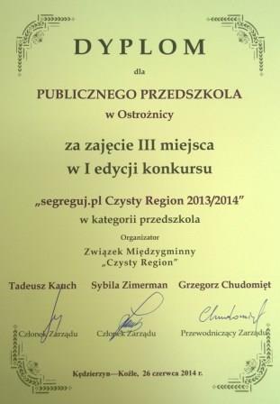 Od 7 października 2013 roku na terenie gmin członkowskich Związku Międzygminnego "Czysty Region" prowadzona jest I edycja konkursu Segreguj.pl, której celem jest: